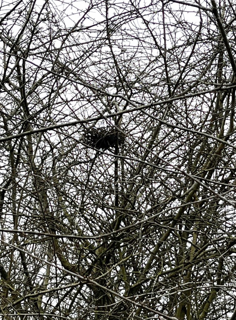With there being very few leaves on trees it’s a good time to see how many nests you can see. The male woodpigeon brings nesting materials to the female who then builds the nest. She lays sticks over each other in an untidy platform-like nest and then lays two eggs, which her and her partner both incubate.