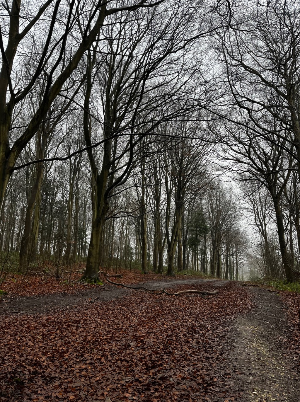 20th: Ivy hugging trees stands out against the bare bones of trees.